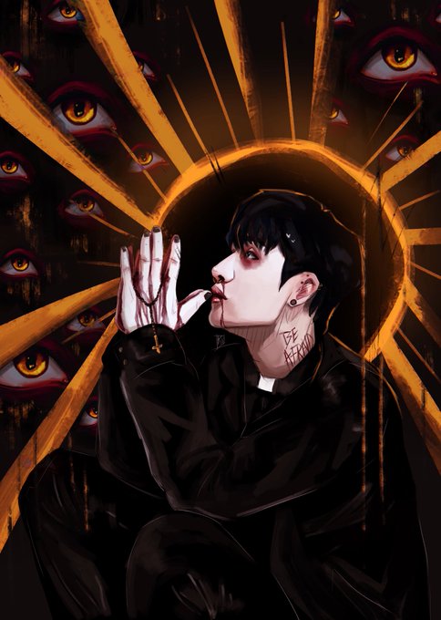 TW BLOOD heres my piece in the #skzemozine !!! i really like this piece hehehe i might already own print stock for it 👁️👅👁️ -- #skzfanart @emoskzzine #Straykidsfanart #StrayKids #minsung @Stray_Kids
