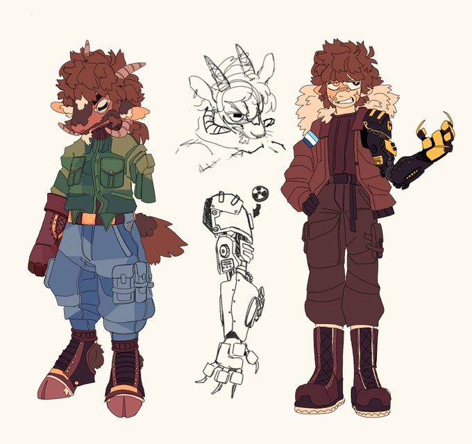 #tubbofanart i scribbled this out at breakneck speed because my brain wouldn’t let me do anything until I finished his design, c!tubbo is a goat shapeshifter with a badass robot arm idc