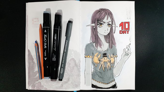 First camping trip with my elf friend .😃⛺️🔥 #Inktober #inktober2022 #inktober2022day28 #inktoberday28 #inktobercamping #camping #AnimeArt #animegirl #artist