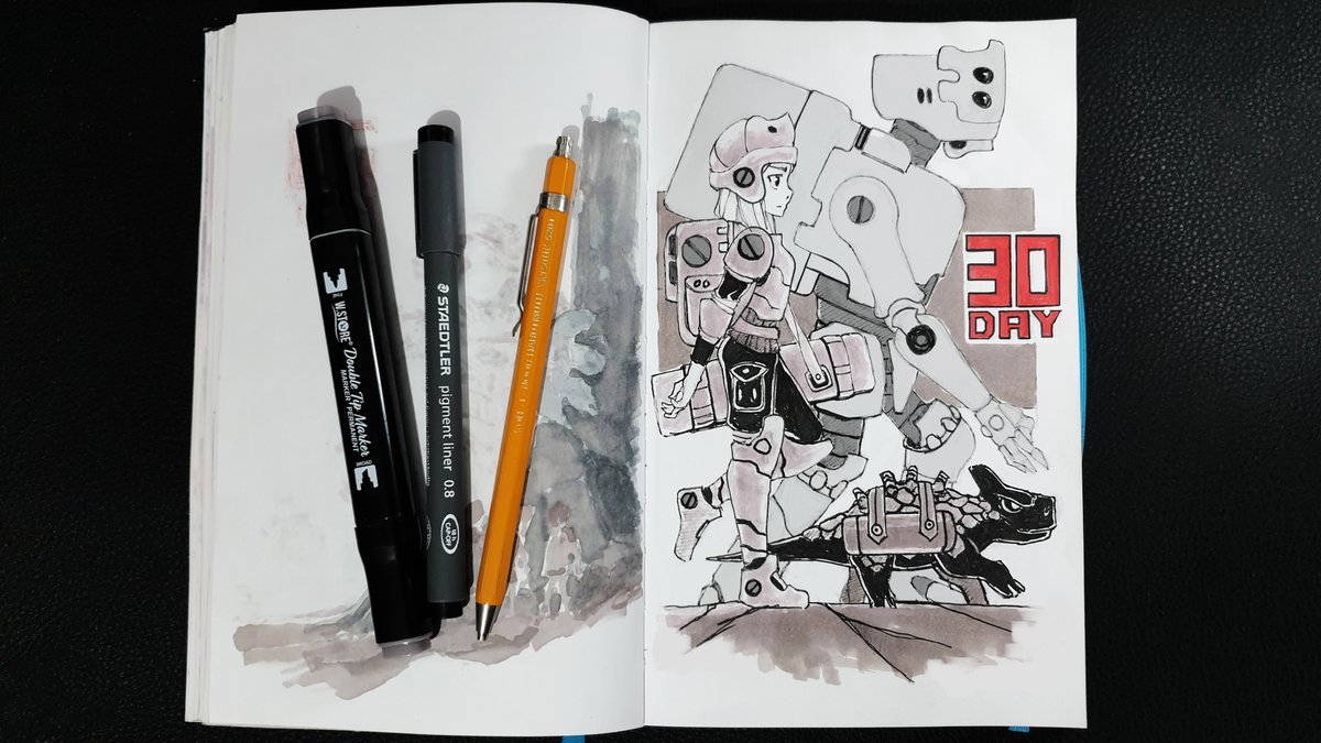 Geared up and ready for action🛄⚙️🤖 #Inktober #inktober2022 #inktober2022day30 #inktobergear #animegirl #AnimeArt #Robot #characterdesign