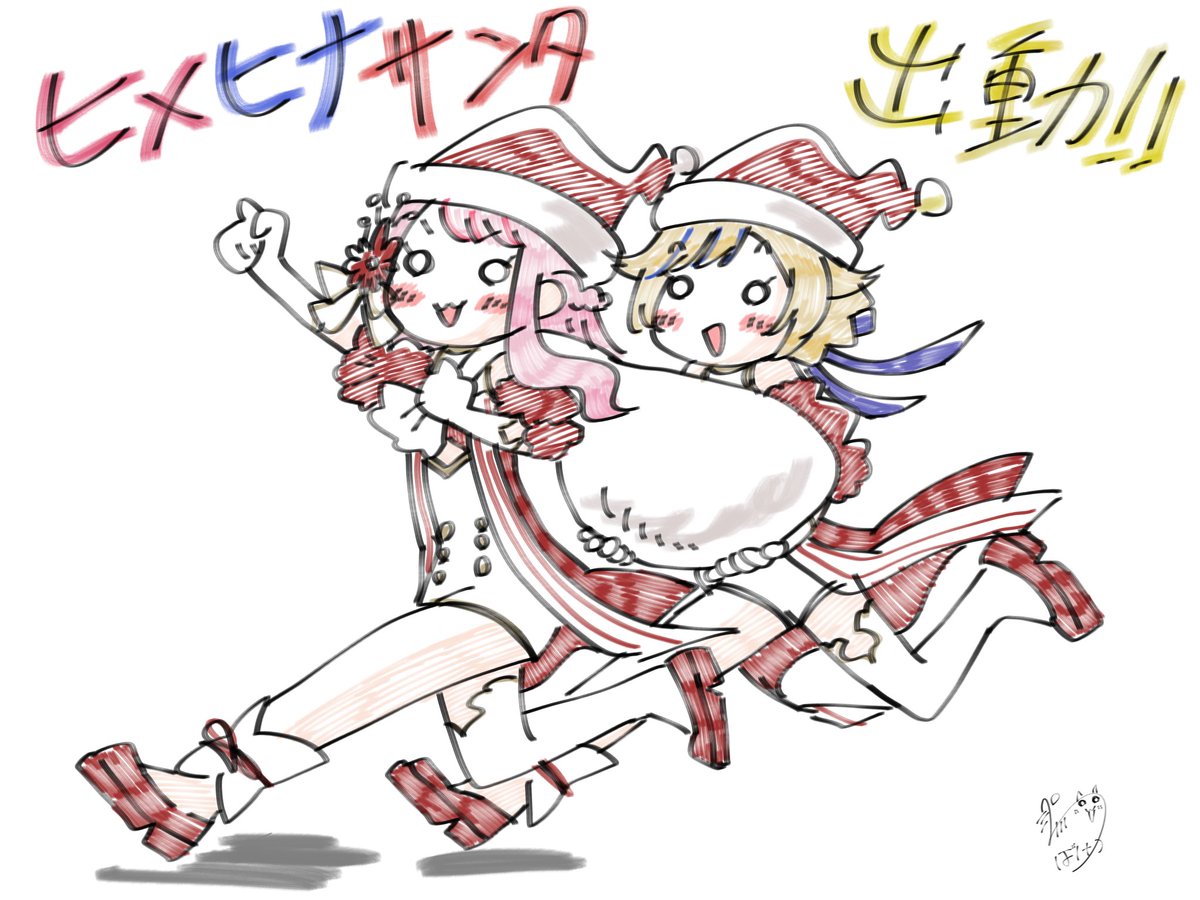 #ヒメヒナアート クリスマス衣装かわいすぎたのでらくがき…