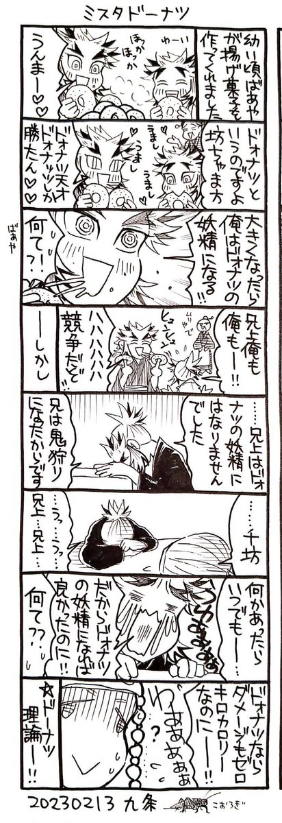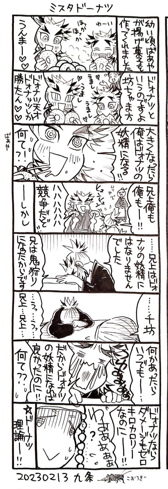 14 97 兄上と弟とドーナツ描きました。ドーナツ食べたいよドーナツ。オールドファッションしか勝たん! 23/02/14 00:21