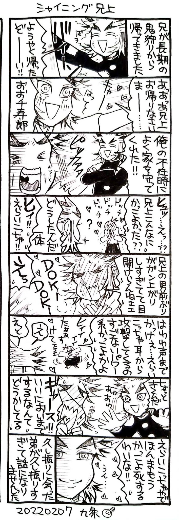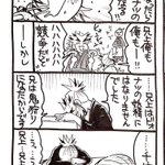 長期ONI狩りから久し振りに帰ってきた兄上の話を描きました。兄上の髪型がもうわからんくなってきたけど知らぬ存ぜぬで通す所存です!