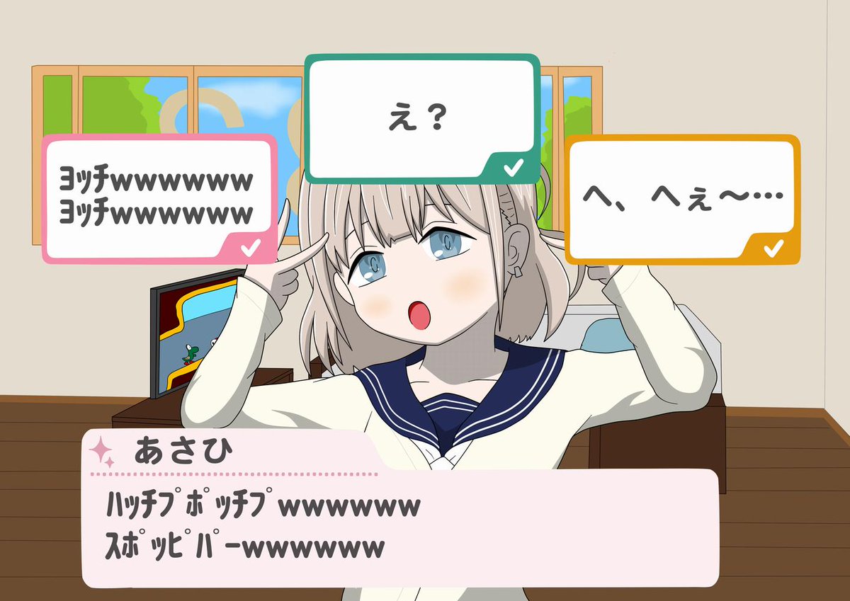 某ゲームの下水道ステージのマネをする芹沢あさひさんを描きました。