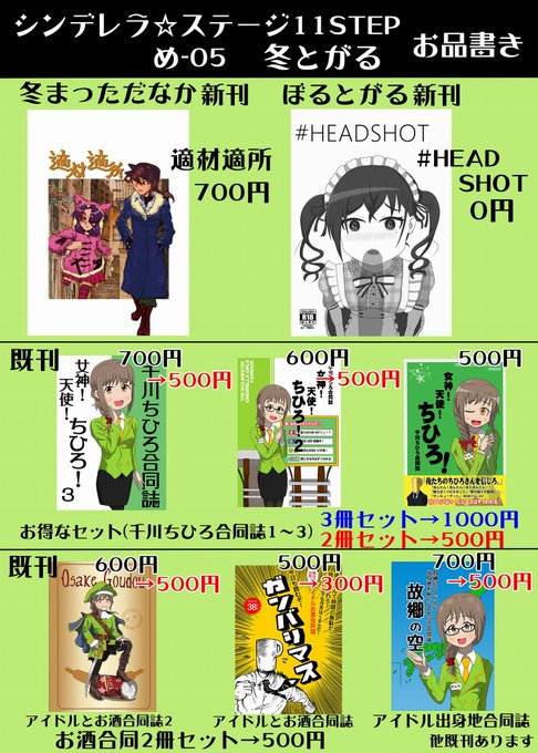 2 2 シンステ11のお品書きこんな感じでっす! スペースは「め-05 冬とがる」です。 #cin_stage twitter.com/volt514/status… 23/03/11 02:27
