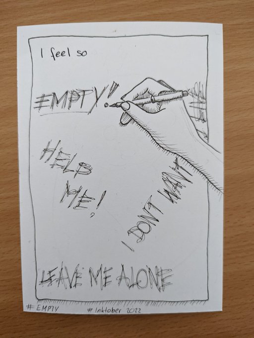 Ich war sehr Ideenlos bzgl des heutigen #inktober2022. Jedoch möchte ich dazu etwas sagen. Wenn du diese Gedanken hast, du bist nicht allein. Bitte rufe die Telefonseelsorge, wenn es dir nicht gut geht. Es kann geholfen werden und man hört dir zu.
