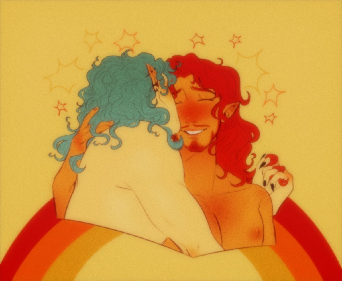 happy #PortfolioDay 🌈✨ i’m Von, a transmasc digital illustrator & I draw queer fantasy characters in love :D ❤️🧡💛