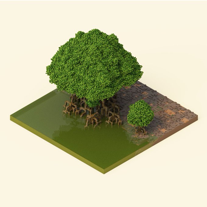 WIP... Somewhere in Mekong Delta. I'm working on my "3715" voxel art series. Will release the full version of this piece soon. #voxelart #magicavoxel #isometric
