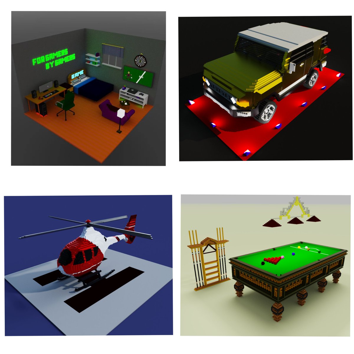 Savage collection 1. Gaming room alpha 2. FJ cruiser 3. Snooker table 4. Helicopter alpha #voxelart The vox file will send too. Available on #opensea. 0.05 ETH Usable on #Metaverse. #NFTSPACESHIP.