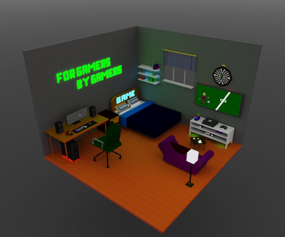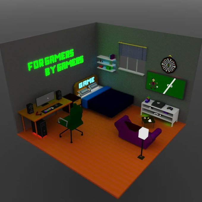 Gaming room alpha. Every single part is designed and built-in #magicavoxel. This #nft can be used in the #metaverse. It's available on #opensea. Saveg collection. Thank you all for supporting me. #nftart #nftcollector #nftcollection #nftartists #voxelart #digitalart