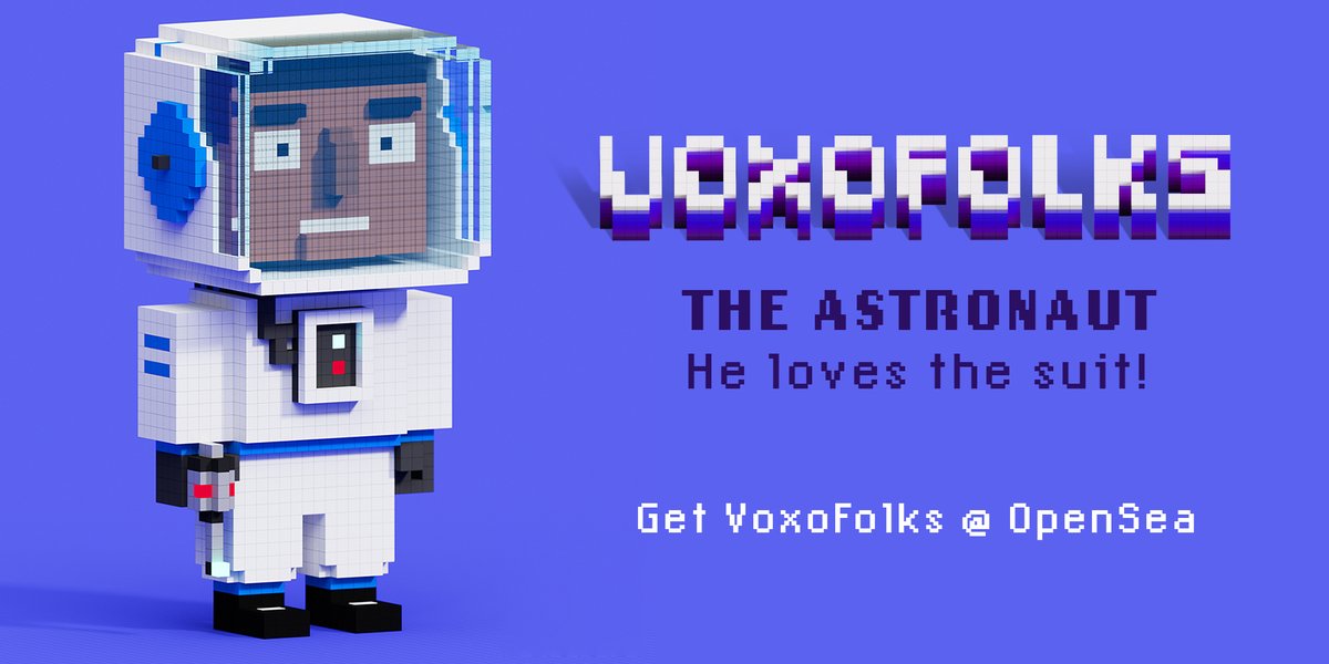 The Astronaut He loves the suit. Doing a lot of "we have a problem" jokes. Get VoxoFolks at @opensea . . opensea.io/collection/vox… #nft #nftcollector #nftcollectors #NFTcollectibles #NFTCommuty #cryptoart #Crypto #cryptovoxels #opensea #voxelart #lowpoly