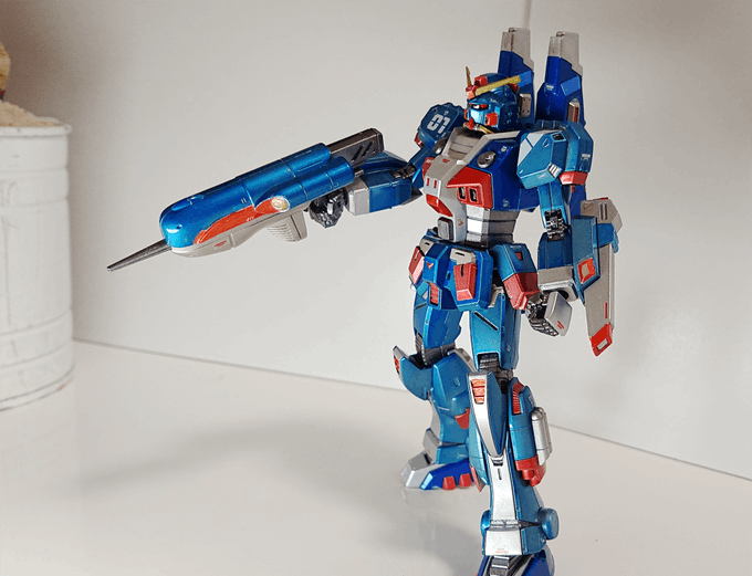 76 475 夏に合いそうな🏝️水中型ガンダム、ようやく完成ー! 塗りだけやった感じです。 色が多く組むのが手軽に楽しいキットでした💯 水色のメタル系を基本色でオレンジを赤に変えて 白をシルバー系にしたら謎の超合金風味…! デカール貼る前と貼った後の写真を。 22/08/19 21:28