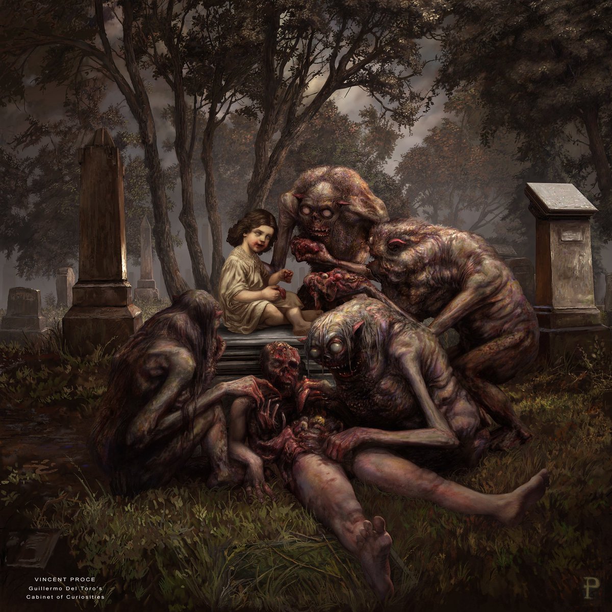 If you’re watching Guillermo del Toro’s Cabinet of Curiosities In Pickman’s Model you may notice some creepy paintings and drawings. I had the pleasure of spending a joyful last summer doing bunch of those. Here’s some of what you might see. @RealGDT @CabinetNetflix #keiththomas