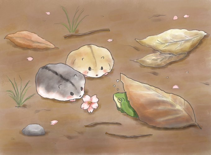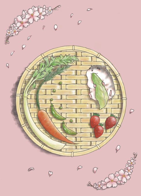 36 215 春の味覚を味わうハムスター🐹🥬🌸 他の季節も描きたいのですが、時間が掛かるので、とりあえず春のイラスト投稿します🐹 夏から描けばよかった😂 23/07/11 21:52