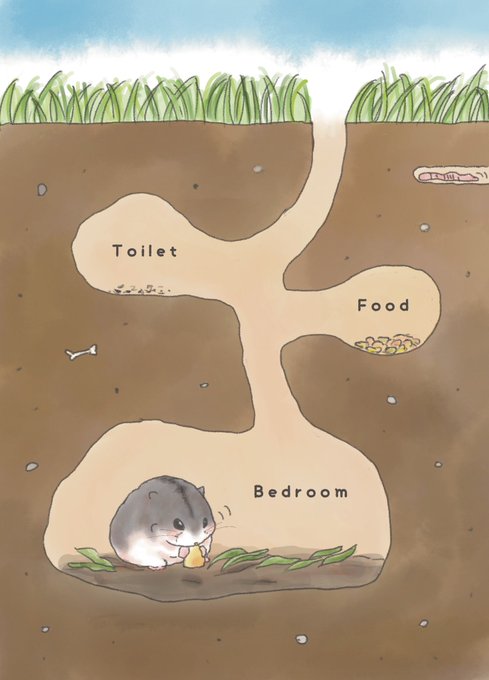 157 850 【妄想】野生のハムスター 地下での暮らし 野生のハムちゃんたちの巣穴の暮らしを見てみたい!と思い、なんとなくのイメージをイラストにしてみました。 いつか動画なんかあったら見てみたいな🐹 23/07/31 22:15