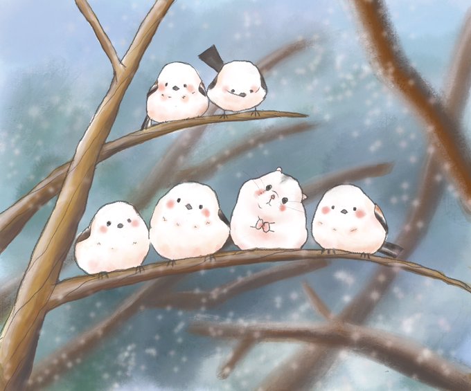 シマエナガに交ざるハムスター 以前描いた絵と似てるけど、今日はシマエナガの日ということで挑戦🐹🐥