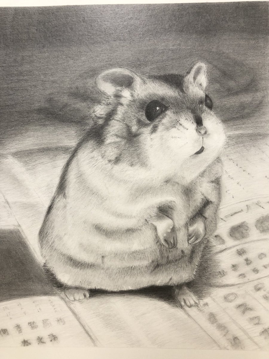 たまには気分を変えて鉛筆でぼたんを描いてみました✏️ なかなか上手くいかなくて、思った以上に時間が掛かってしまったけど、なんとか完成🐹