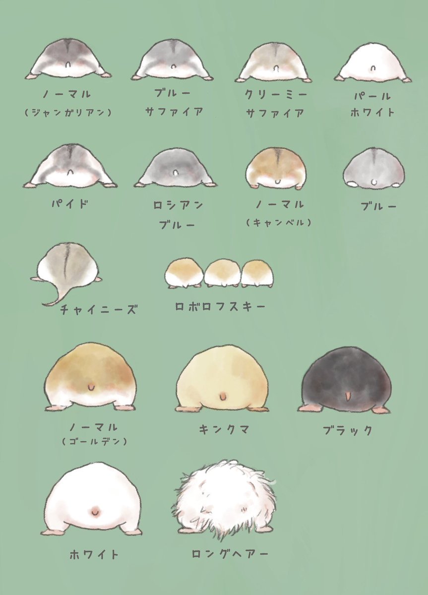 はむけつイラスト、ご依頼があったので追加しました。 ご依頼いただいたハムちゃん達が皆んなドワーフハムスターだったのと、前回のイラストに入りきらなかったので今回はドワーフのハムケツとして新しくまとめてみました🐹🍑