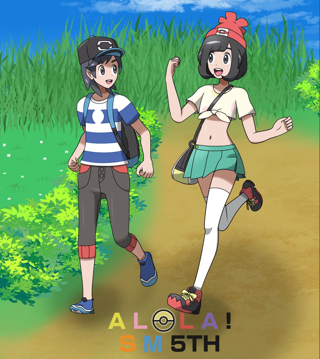 5 years of Alola. 5 years of #PokemonSunMoon. Here's an illustration of Elio and Selene to celebrate! #Pokemon25 #ヨウ #ミヅキ #ポケモンSM5周年 #SM5周年 #ポケモンSM