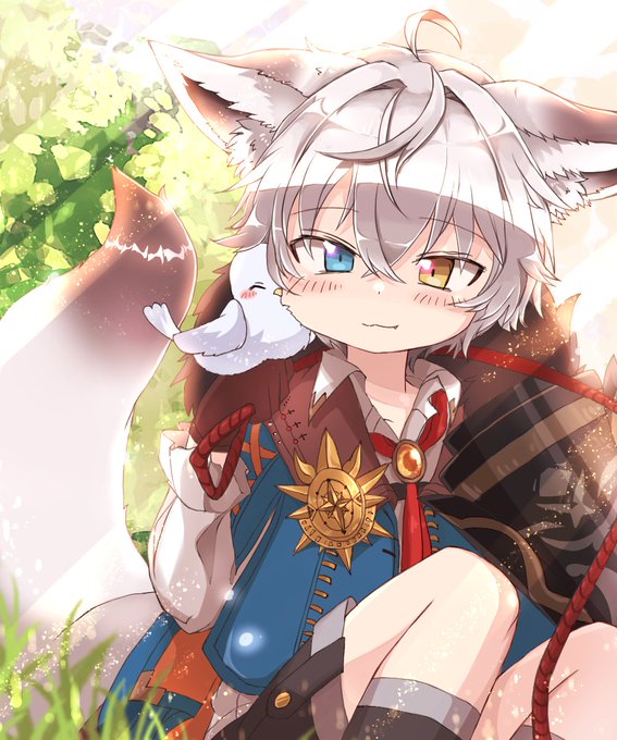 #ラスピリお絵かき 鳥にチューしてもらえて嬉しいティエン君🦊🕊️