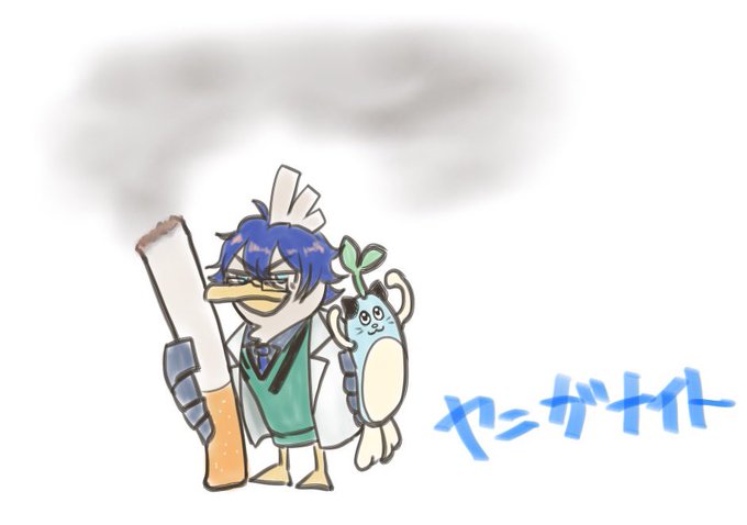 思い付いたからには描くしか無かった 禁煙出来ないヤニガナイト #まめねことレオス #使ってくレオス