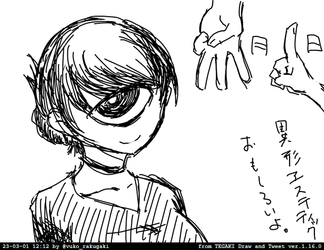 0 2 #単眼 あんまり投稿できてなくて申し訳ない。確定申告終わったのに! #tegaki_dt 23/03/22 23:13