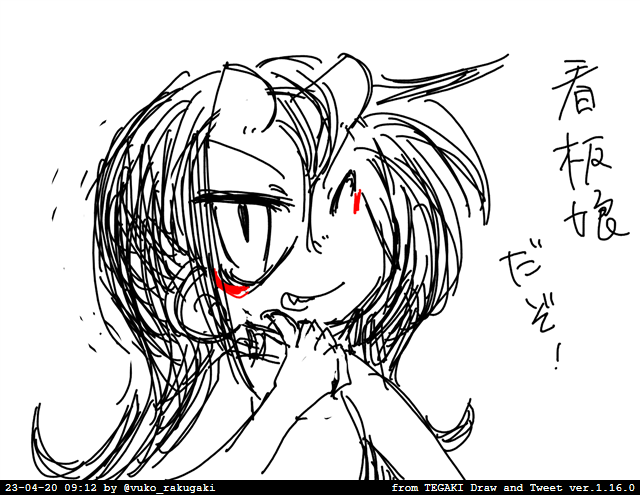 3 10 @vuko_rakugaki #単眼 #単眼の日 なんか右乳がボリューム不足な感じがしたのでふくらましたよ。この人はでかければでかいほどいいよ。 #tegaki_dt 23/05/01 11:49
