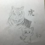 描いたぞ。 「虎とネコ」 虎とか猫を描いて欲しいってきてたから描いた。 自分的にはちょっと上手く描けた気がする。 最高とまではいかない。 皆さんの感想聞きたいな! #イラスト好きさんと繋がりたい #イラスト