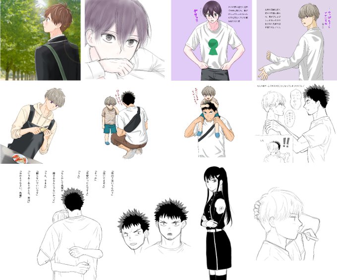 #今月描いた絵を晒そう 今年のまとめに入れなかった4枚をピックアップ 今月は6枚(模写練入れたら7枚)でした! 左下はネギま!のフェイトくんです 美咲&莉々奈は実は投稿時から修正してます、さてどこでしょう…?