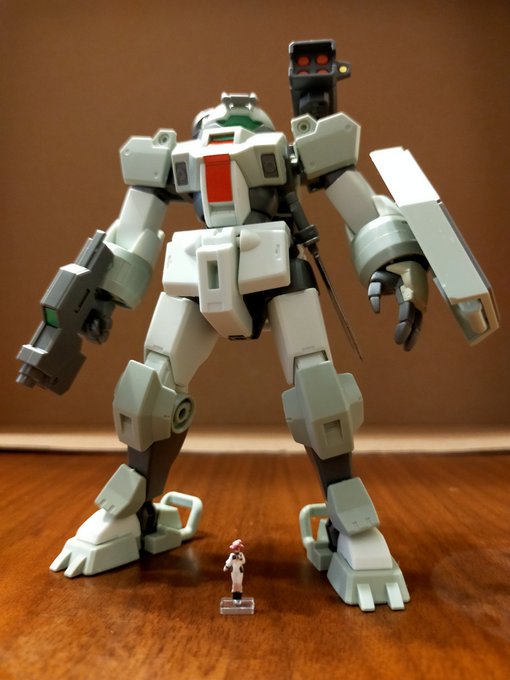 #皆さんの素敵なAGEキット作品 #ガンプラ好きと繋がりたい ただのクランシェカスタムです。 ガンダムAGE-2の量産機らしい。 でも似てない。 また別の良さがあります。近未来的というか。 バイザーの中にはラインアイがあるんだけど、よく見えない。 飛行形態はガンダム00のブレイヴに似てますね。