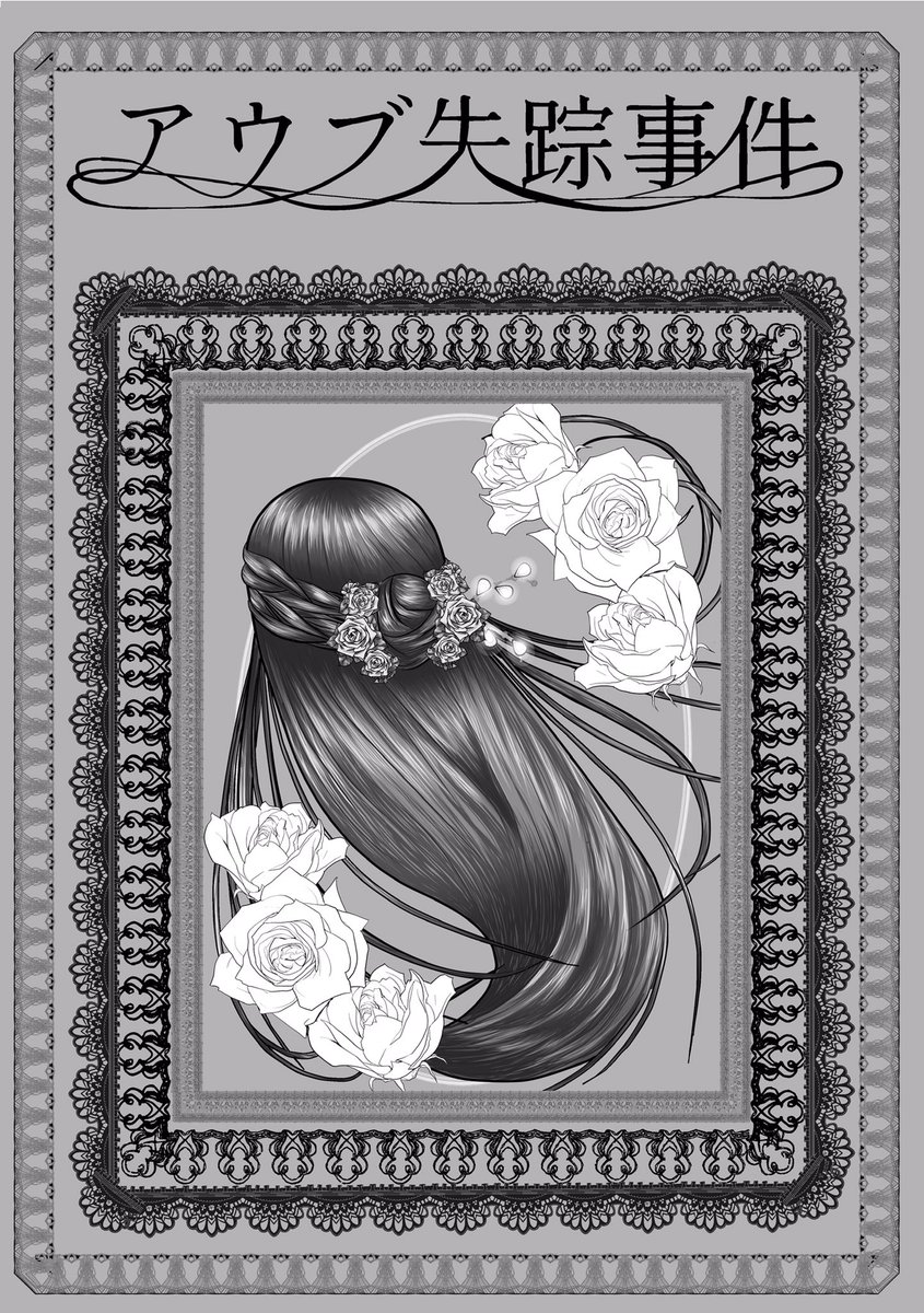 #このタグを見た人はラフ画とその完成絵を見せる 押したから貼っとこ 最近比較的ちゃんと描いたネップリ表紙で。横顔にしようか後ろ姿かでかなり迷った模様。髪も頑張って描いたのに結局花で隠れましたねʕ•ᴥ•ʔ 枠の端の処理とかも微妙にかわりました。ゴテゴテしたのが好きです(*´꒳`*)