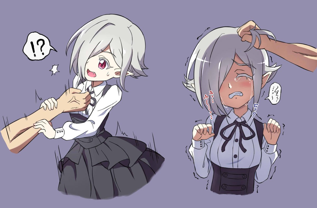 邪神ちゃんのペルちゃん描いてみました。胸ぐらをつかまれて散々怒鳴りつけにされたせいで怖くて泣いてしまったという絵です。ソフトなリョナ要素があるので閲覧にはご注意ください。 #邪神ちゃんドロップキック #jcdk