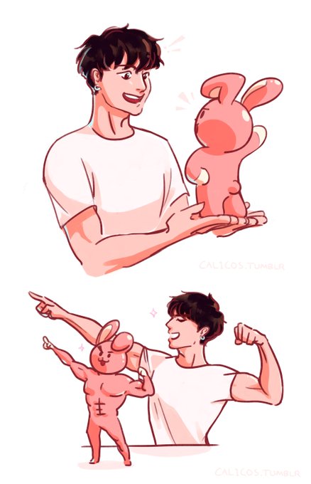 jk and cooky -- muscle bunnies, muscle buddies :') #bts #JUNGKOOK #Jungkookfanart #btsfanart #COOKY #BT21_UNIVERSE #BT21fanart #BANGTAN