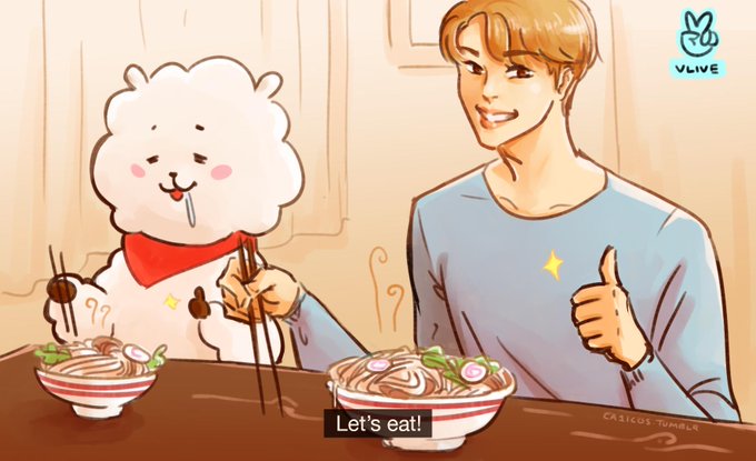 eat Jin ft special guest RJ!! #bts #bt21 #rj #jin #seokjin #kimseokjin #BT21_UNIVERSE #btsfanart #BT21fanart