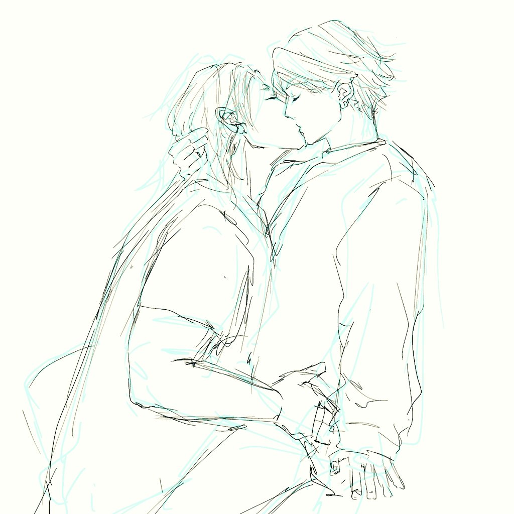 17 168 じぇんじぇんねれなくなっちゃったから久しぶりによなかのらくがき。はぴばれんたいん!!💗(といいつつただただちっすがかきたいだけなんだ) 22/02/14 01:27