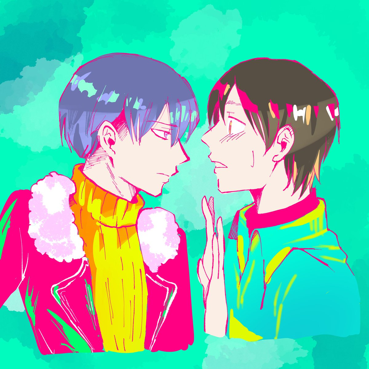 #リヴァエレ版ワンドロお絵描き60分1本勝負 【ハッピーエンド】 遅刻参加 8月8日 20:15〜21:15 喧嘩していたけれど公衆の面前で仲直りするリーマンりばえれ。全力で幸せにしようとしたらよく見る茶番になっちゃった。