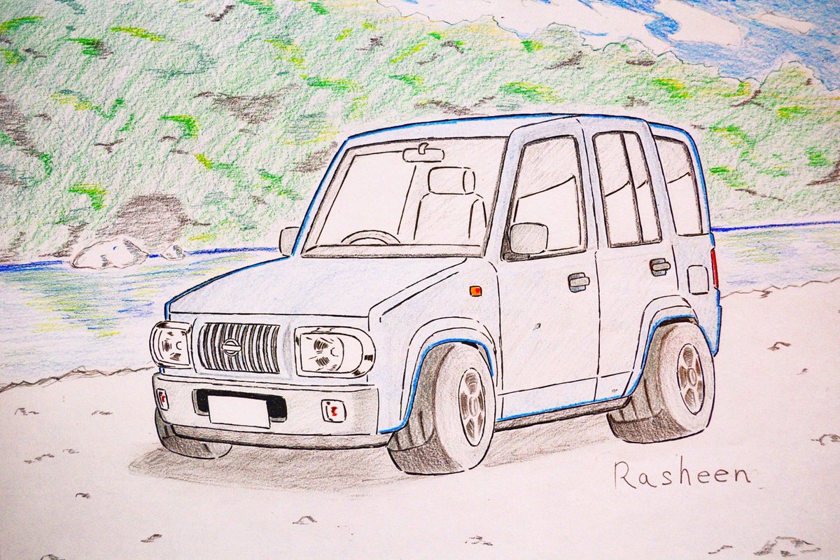 ラシーン/日産 車に詳しくない時は古い車という印象しか無かった車ですが、友達が乗っているのを見ている内に、しみじみ味がある車という印象に変わった1台。 #ラシーン #日産 #絵描きさんと繋がりたい