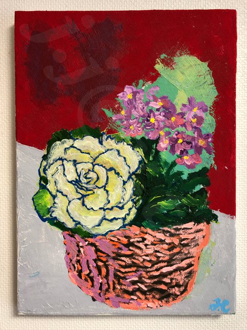 「葉牡丹とサクラソウ -15/01/2022」 canvas f4(333×242mm) #acrylicpainting #art #artwork #ArtistOnTwitter #abstractart #ContemporaryArt #artilljp #みんなで楽しむTwitter展覧会 #冬の創作クラスターフォロー祭り