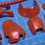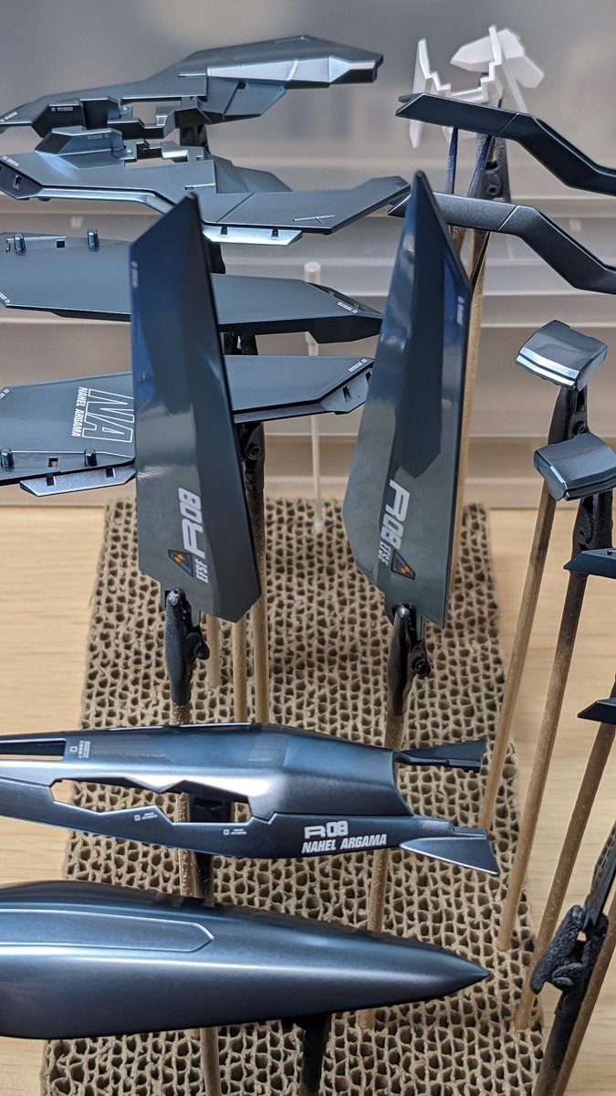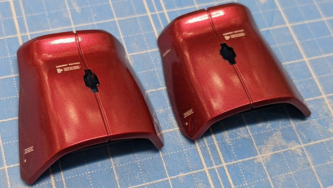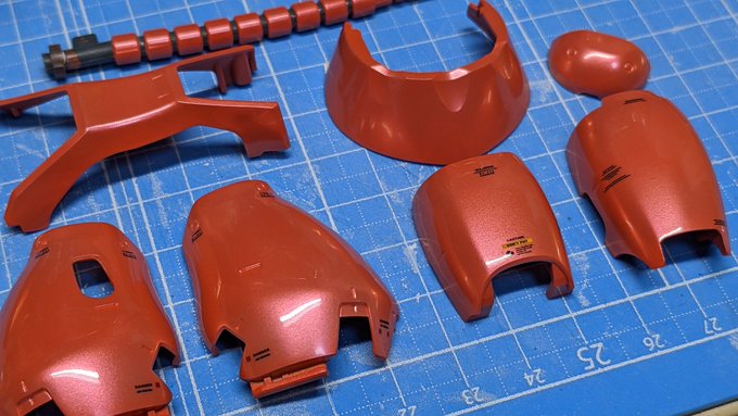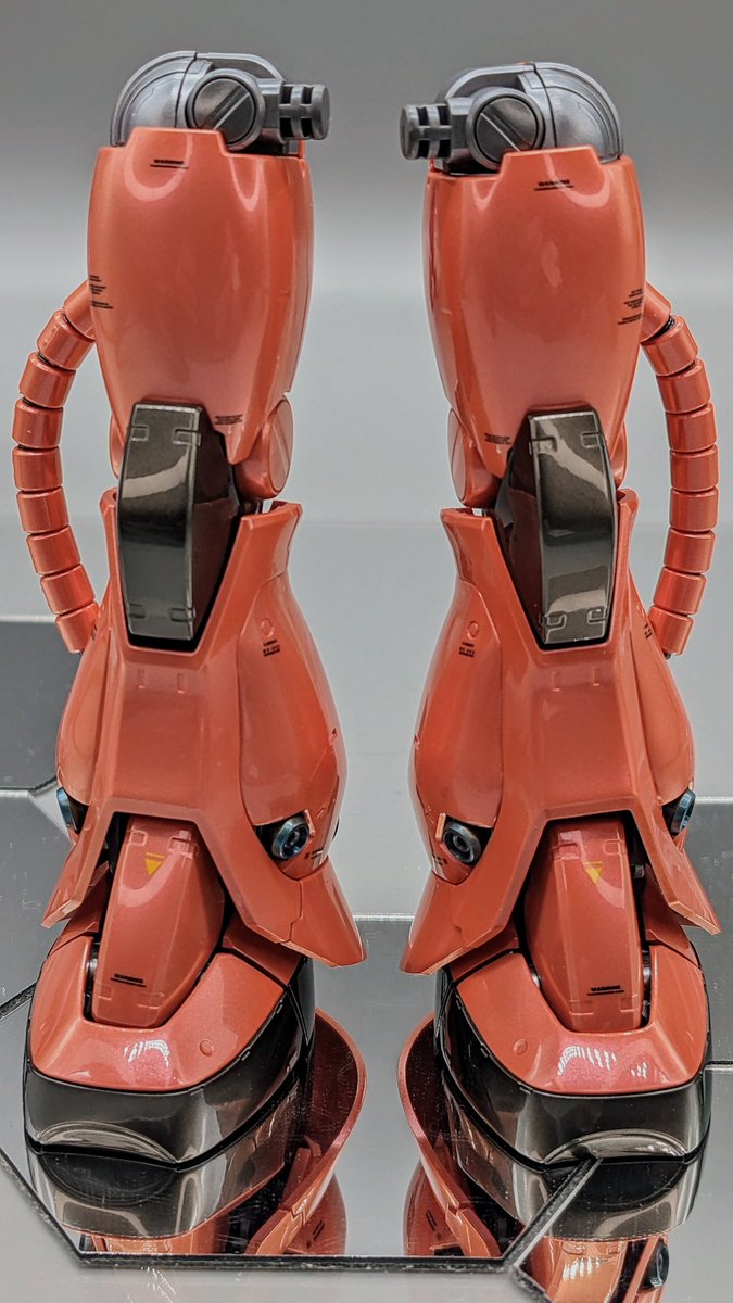 赤い彗星をつくる19 両腕パーツのツヤ出し工程。 パール塗料にクリアーコートして、1度2000番ペーパーで中研ぎします。 これやらないと鏡面になりません。少なくともワタシの技量では😅 #ガンプラ #ガンプラ好きと繋がりたい