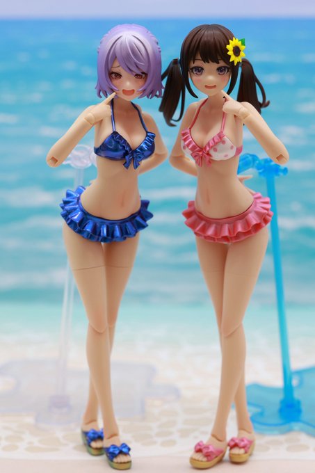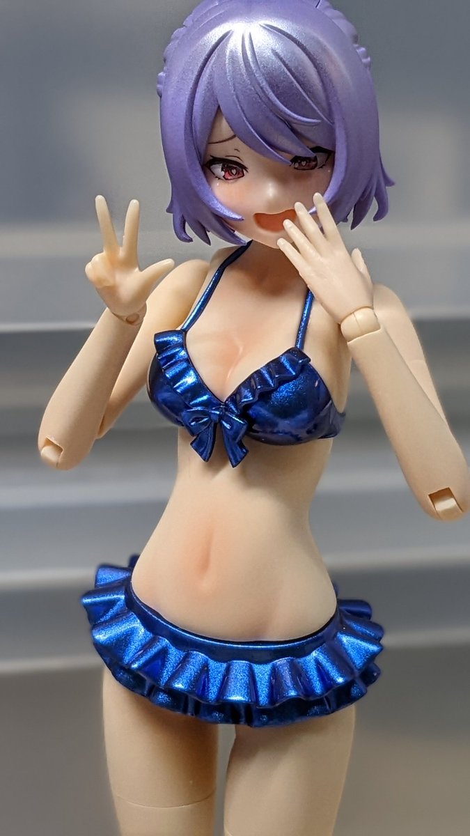 #今年作ったプラモ晒そうぜ 今年は初の美プラも作った訳ですが… 経験積むなかでお胸の表現も進歩する😊 1作目 ルミティア:谷間にスミ入れだけ…😅 最新作 結城まどか水着:クリアーペールレッドでグラデ塗装