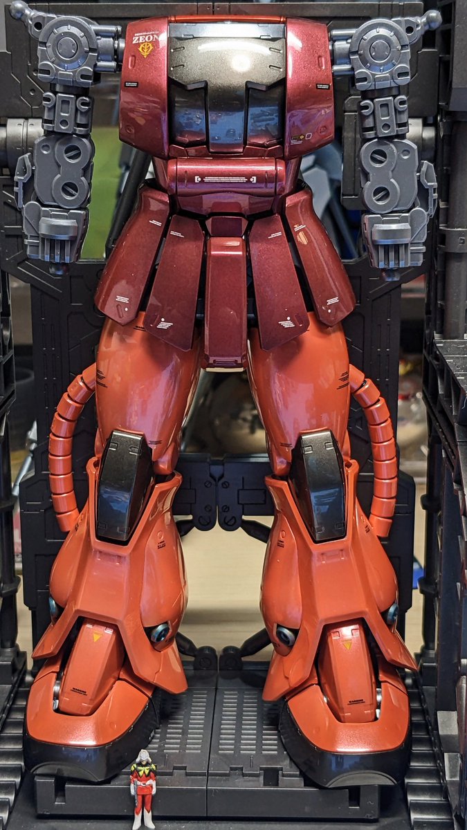 赤い彗星をつくる5 何とか両足まで完成して2022模活納めになります😅 今日から年末休みでチョイと模活お休みします😌 それにしても、このパールレッドは写真にしたときに見たままの色味にするのが難しい…変に補正かかってまう😅 #ガンプラ好きとつながりたい #ガンプラ