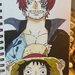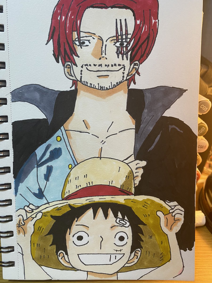 塗れたけど…服の色を間違えたぁ… まぁ、次だ次! て事でシャンクスと子供の頃のルフィ まだまだ下手なのでがんばります! #イラスト #イラスト好きな人と繋がりたい #ワンピース #絵描きさんと繋がりたい