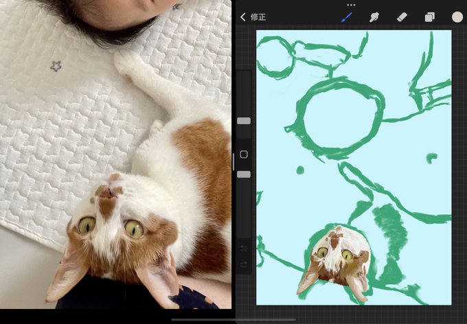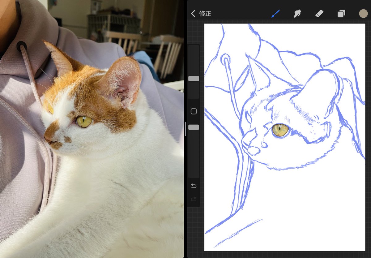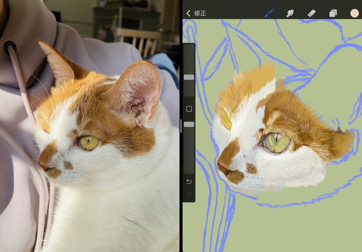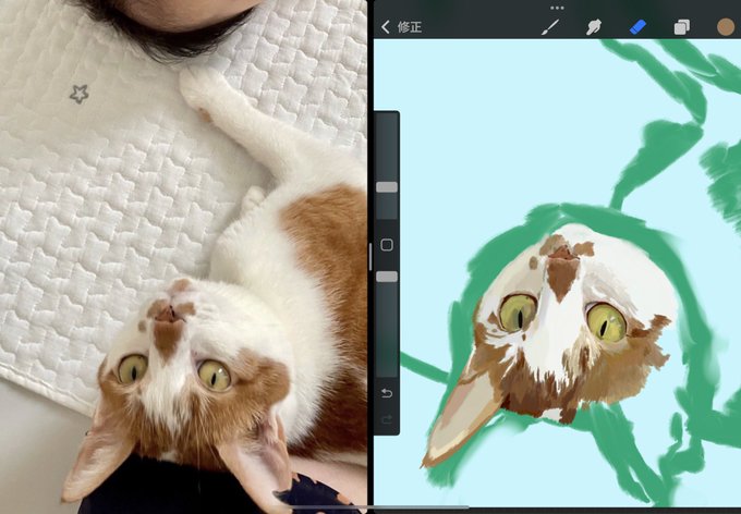 猫がだいぶ見えてきました🐱 もう少ししたら息子の絵に挑戦していきます🎨✨ #イラスト #絵描きさんと繋がりたい #絵柄が好みって人にフォローされたい #無名絵師なので私をフォローして有名にしてください #illustration #artwork