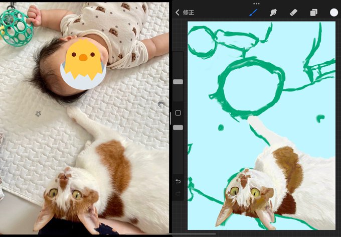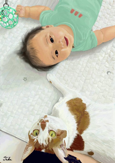 今日は #世界動物の日 かつ #天使の日 だそうで、うちの動物🐱と天使👶の絵を再掲します🎨✨ いろんな人に見てほしいなぁ〜 #イラスト #絵描きさんと繋がりたい #絵柄が好みって人にフォローされたい #無名絵師