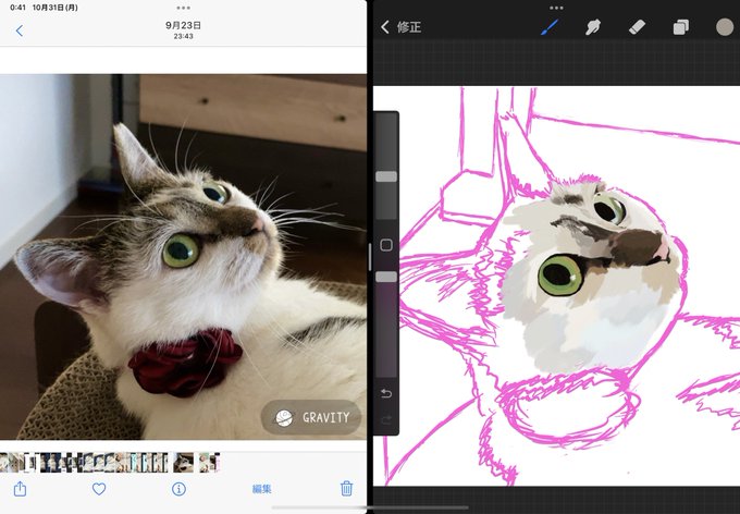 新しい絵と途中の絵同時進行してます🎨 展示会に間に合わなくなりそうなので🥲 ひさしぶりの絵の投稿ですみません… これからまた更新します✨ #イラスト #絵描きさんと繋がりたい #絵柄が好みって人にフォローされたい #いいねかRTで気になった人フォローする #illustration #cats