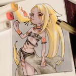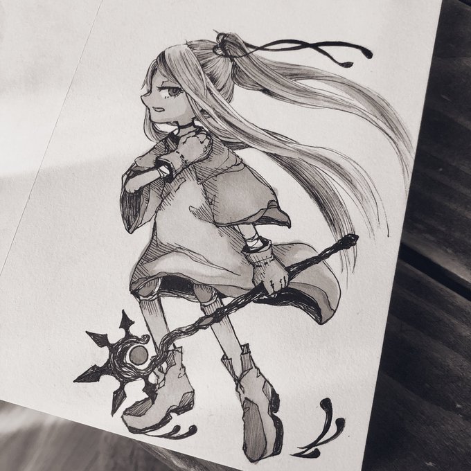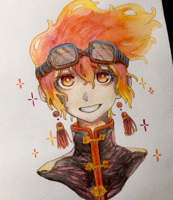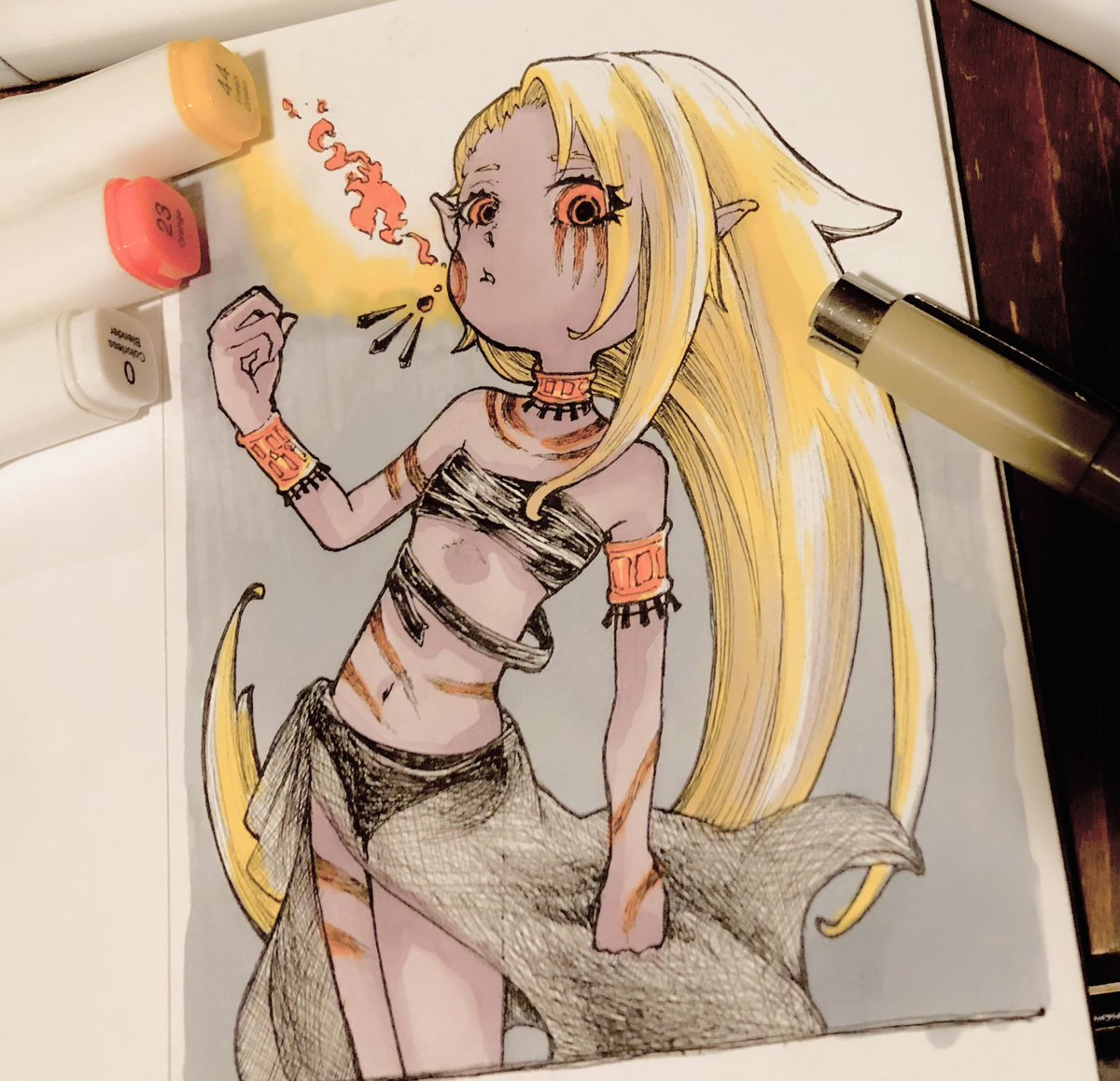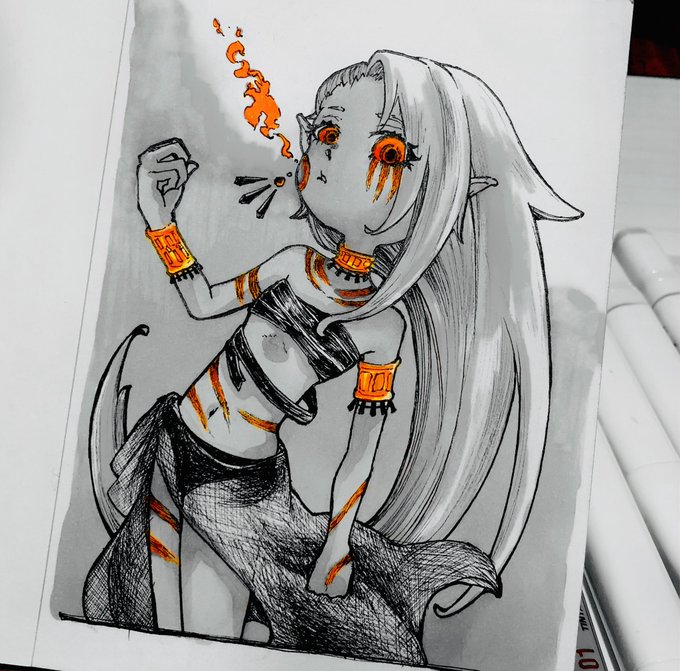 #inktober2022 day5 flame 炎 褐色貧乳民族少女大好きだから描きました。欲を言えば黒髪のが好みなんですが絵的に金髪が可愛いかなと。 でもグレースケールに単色映えも可愛いから加工しました(欲張り