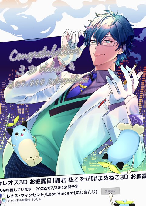 3D&チャンネル登録30万人おめでとうございます〜〜〜🥳㊗️🎉 #レオス3D #まめねこ3D #まめねことレオス