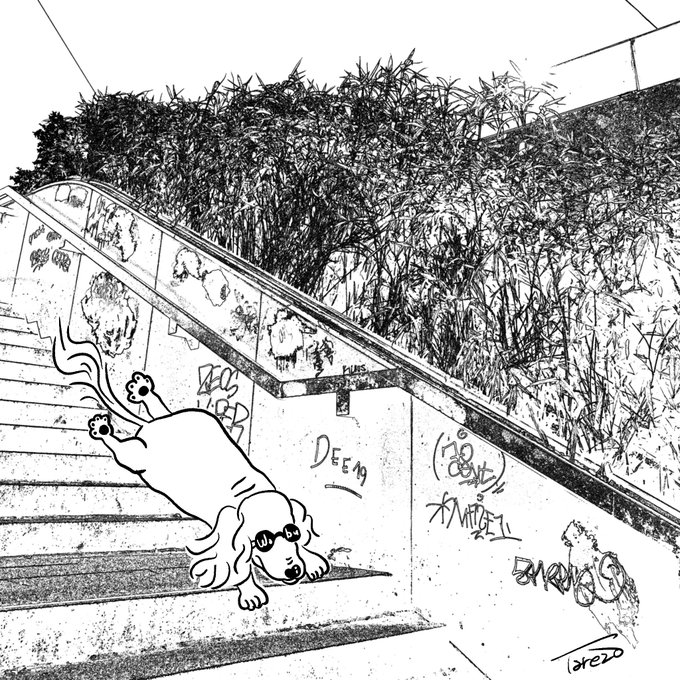 本日のたれ蔵イラストシリーズ🎨 世界のどこかinたれ蔵🐶🌍 #イラスト好きな人と繋がりたい #絵描きさんと繋がりたい #犬好きさんとつながりたい #犬との暮らし #イラストレーターさんと繋がりたい #グラフィックデザイン #線画 #漫画好きさんと繋がりたい #ドローイング