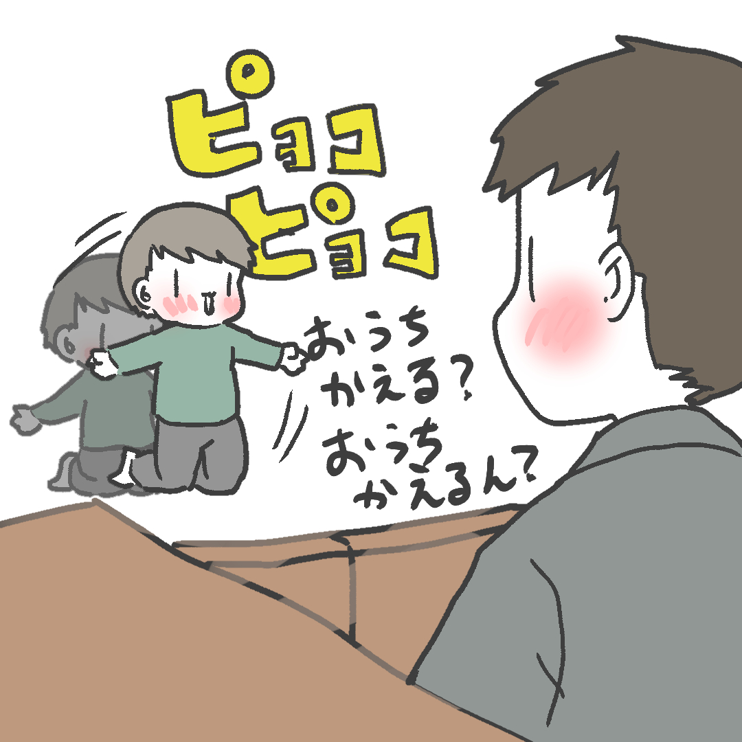 旦那氏、初めての保育園お迎え。 勤務時間の関係上、旦那は保育園の送迎をしたことがなかったのですが、この前初めてお迎えに行って、気絶しそうなほど嬉しかったようです。 #育児絵日記 #育児日記 #育児漫画 #コミックエッセイ #漫画が読めるハッシュタグ #子育て漫画 #ママ垢さんと繋がりたい