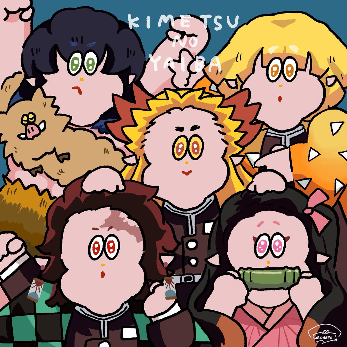 無限列車まだ見に行けてなくて はやく見たいよ〜という気持ちを込めて主要メンバー描いたよ✌️ プリクラ風だよ👨🌾(かわいい . イラストはInstagramメインだったけど こっちにもこれから ちょこちょこあげていこうと思います🙆♂️🌈🌈 #鬼滅の刃イラスト #鬼滅の刃 #イラスト